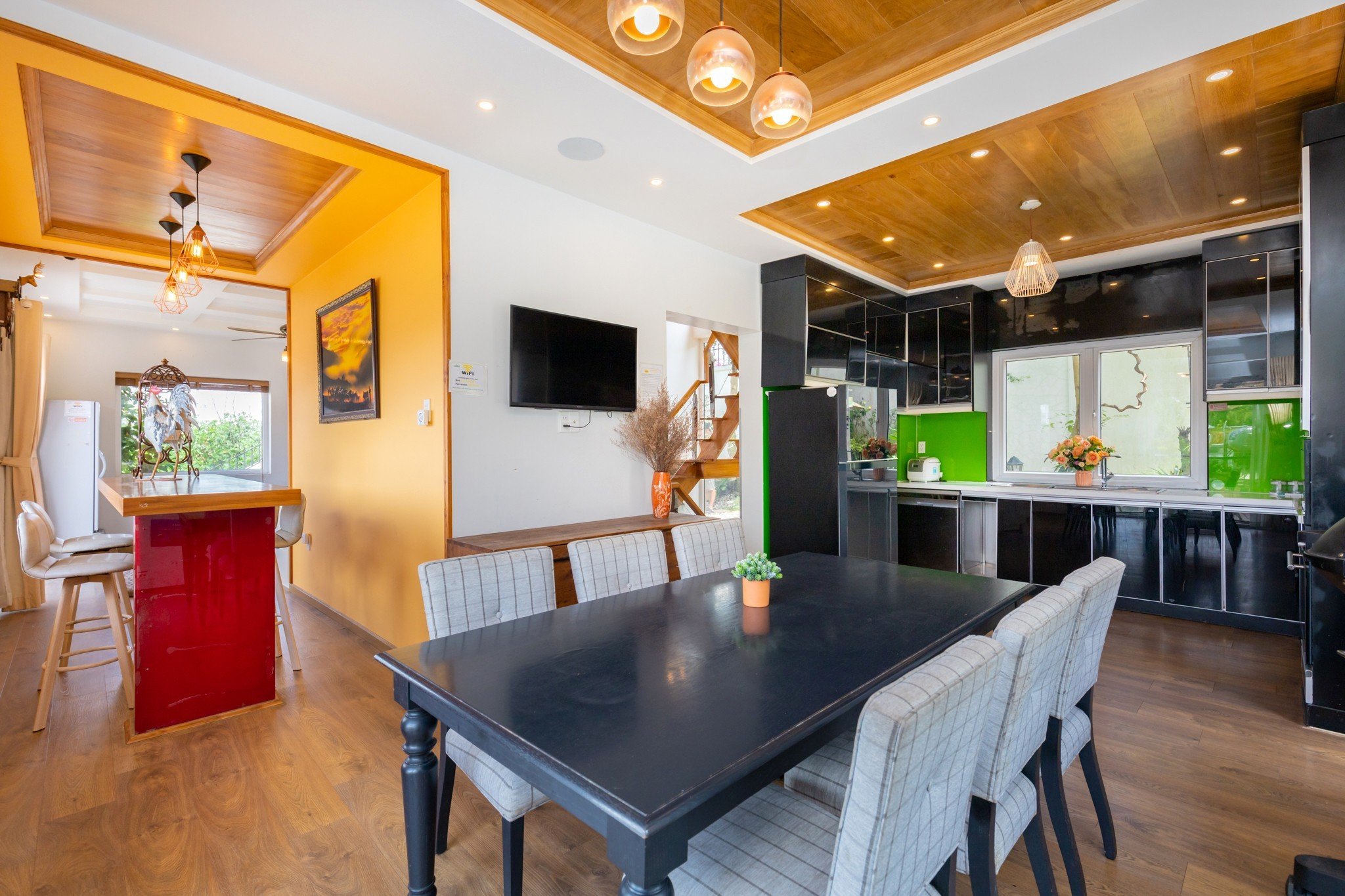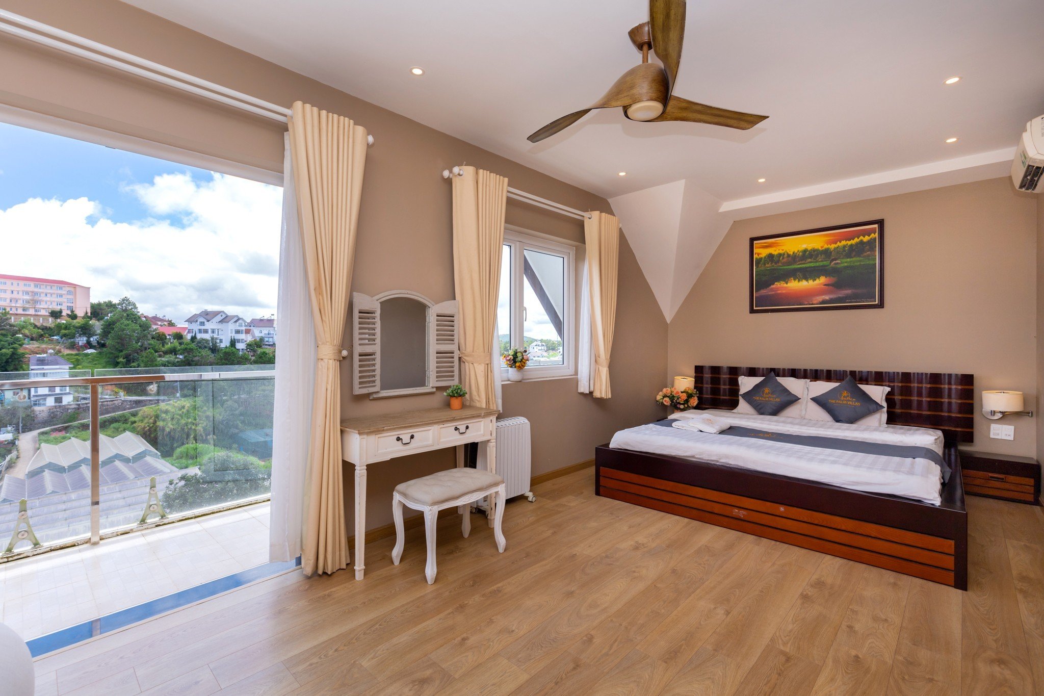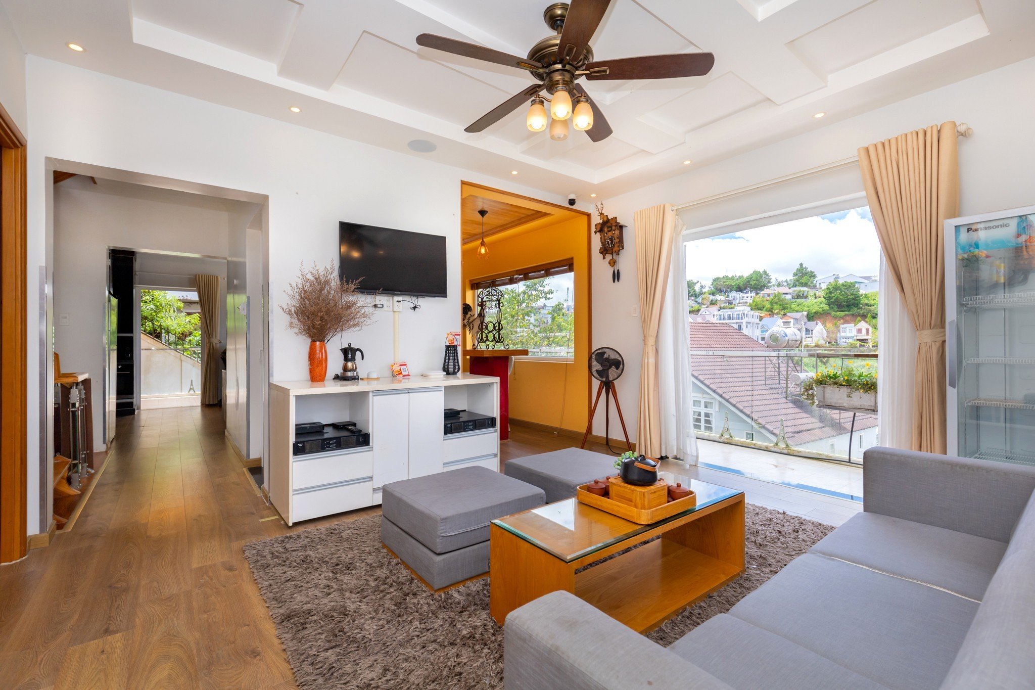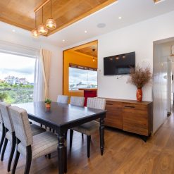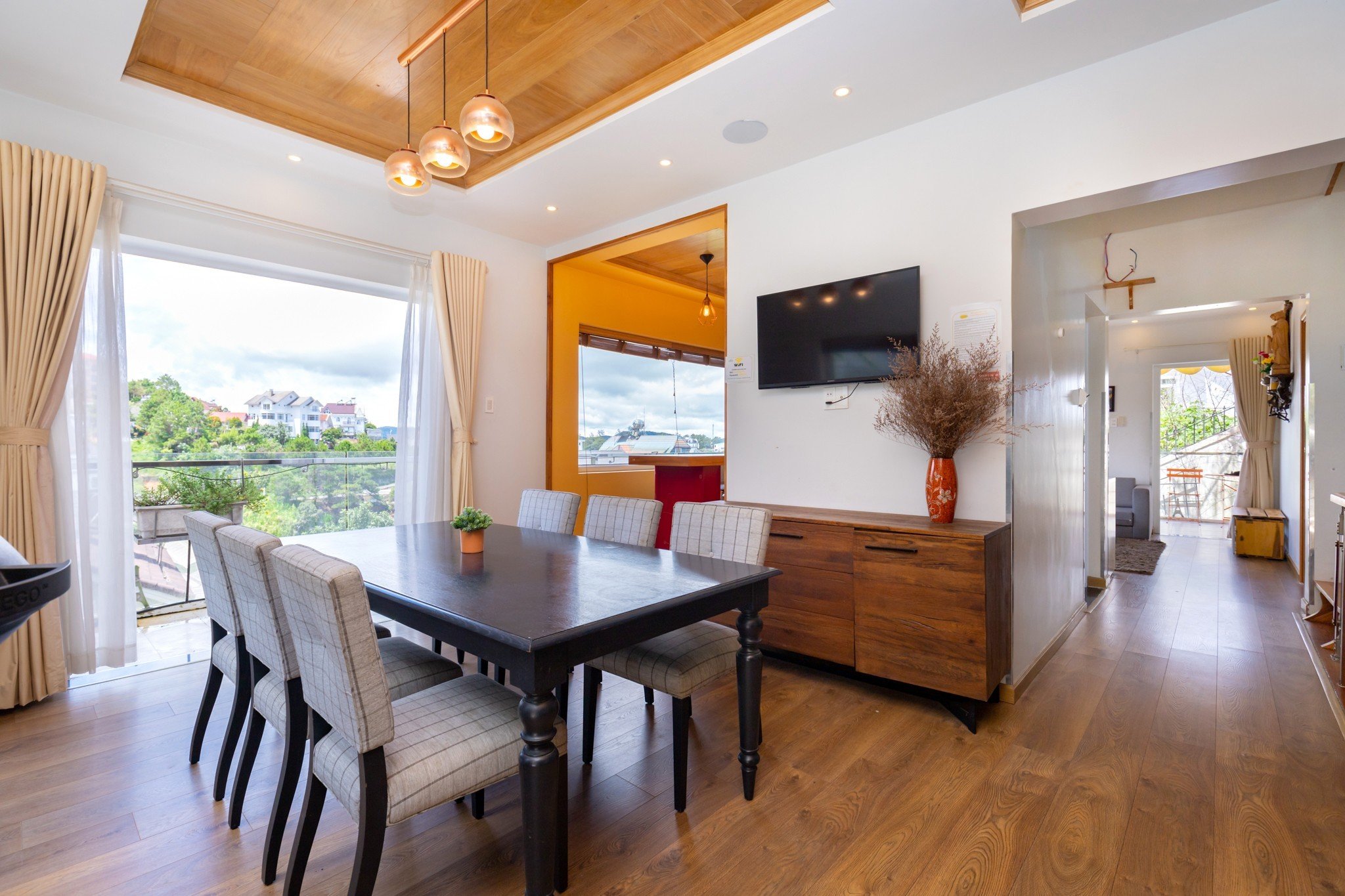 Thông tin chỗ nghỉ : DL094 ‣ Số phòng ngủ : 6 ‣ Số khách tiêu chuẩn : 12 ‣ Tối đa (Phụ phí) : +2 ‣ WC : 7 ‣ Phòng Khách: Có ‣ Bồn tắm : 5 ‣ Xông hơi : 1 ‣ Điều Hoà : Không ‣ Phòng Bếp: Có ‣ View :Rừng Thông, Thành Phố ‣ Không gian tiệc: Có ‣ Nơi đậu xe miễn phí ‣ Đồ dùng BBQ: Có ‣ Wifi miễn phí ‣ Thú cưng : Không ‣ Số phòng 1 giường : 6 | ‣ Địa chỉ : Đường Nguyễn Hữu Cảnh, Phường 8, TP Đà Lạt. ‣ Khoảng cách đến chợ : 3km