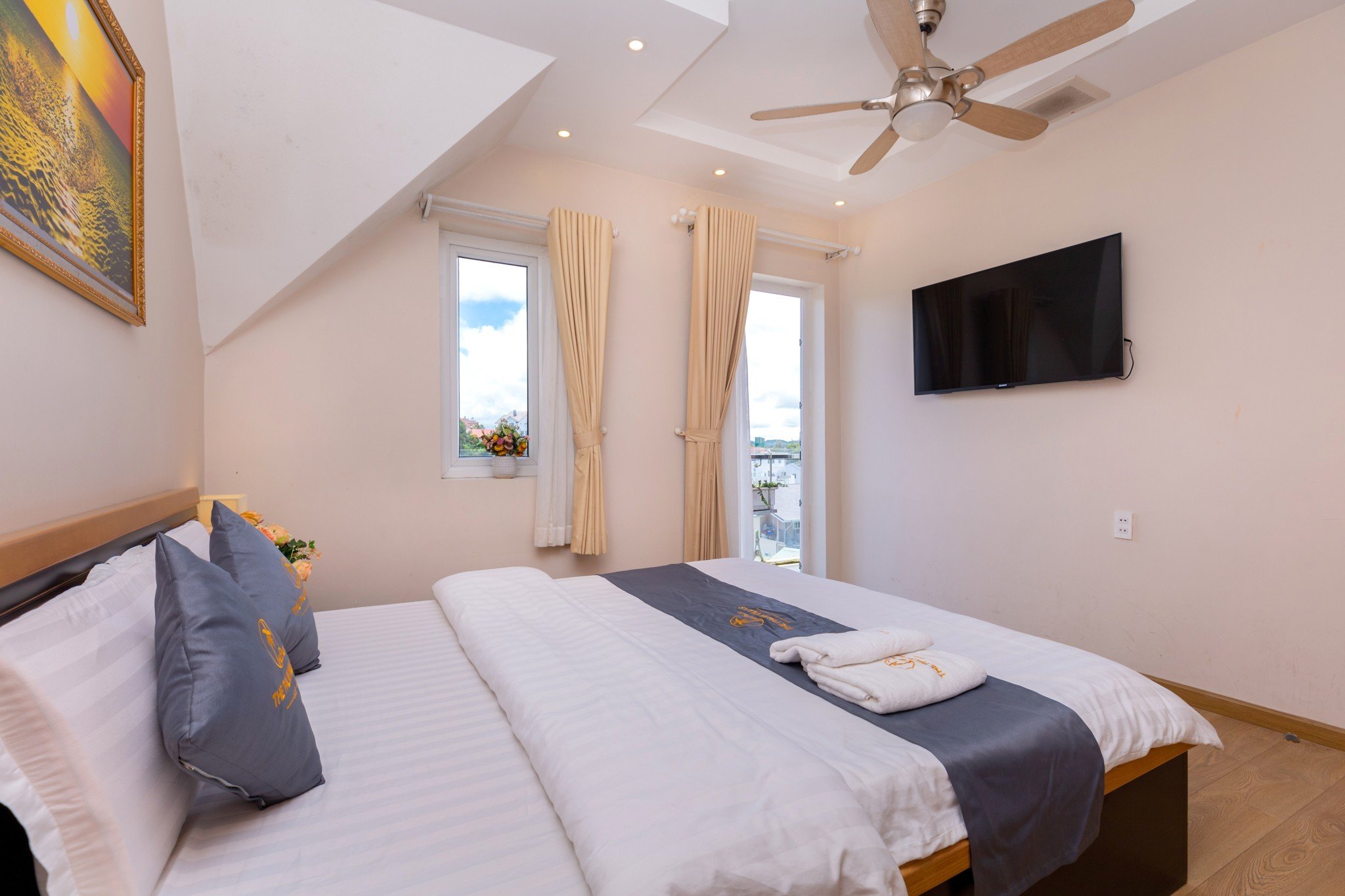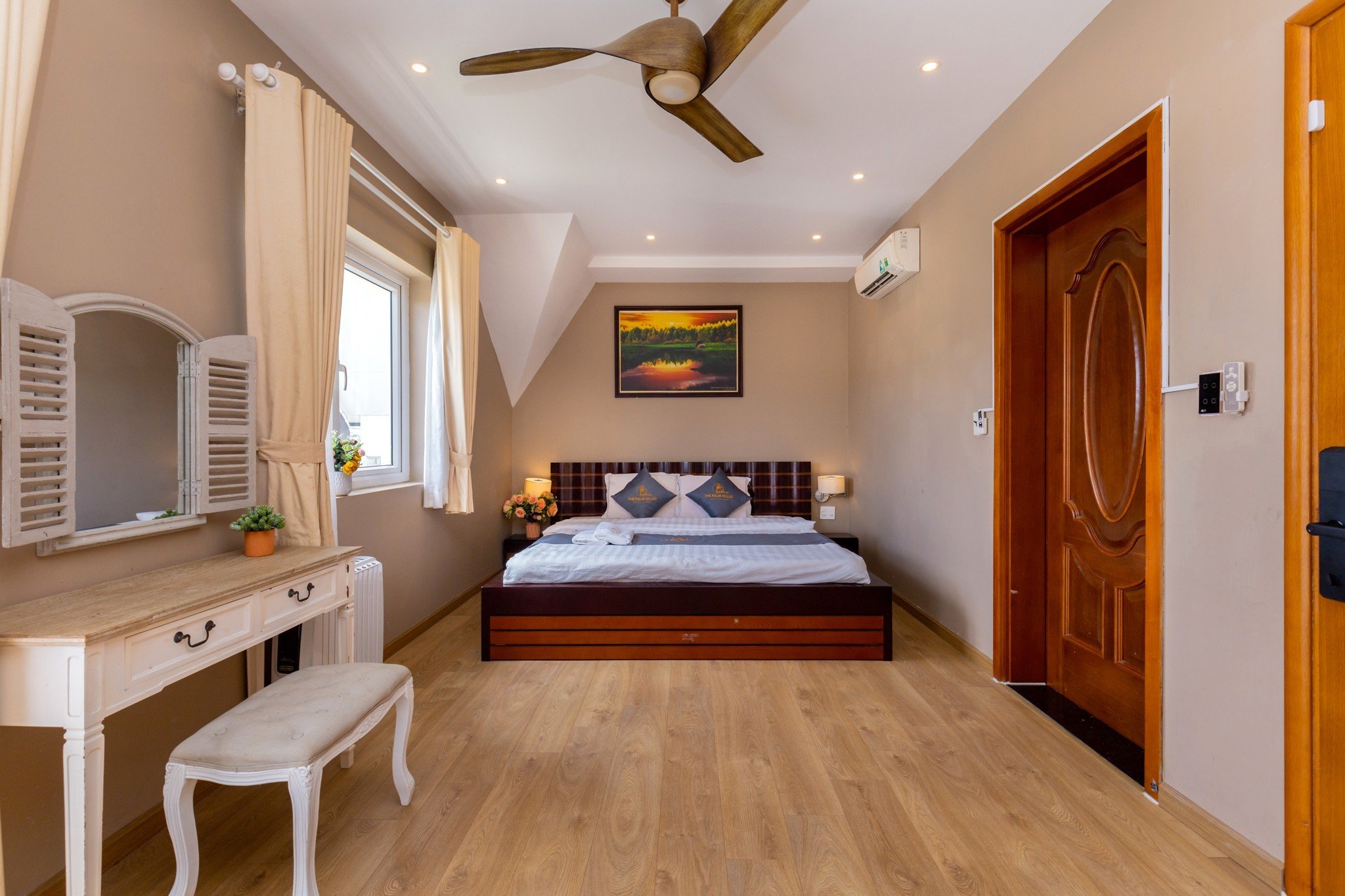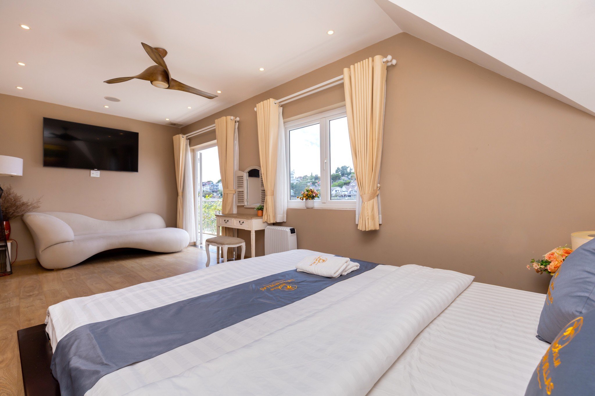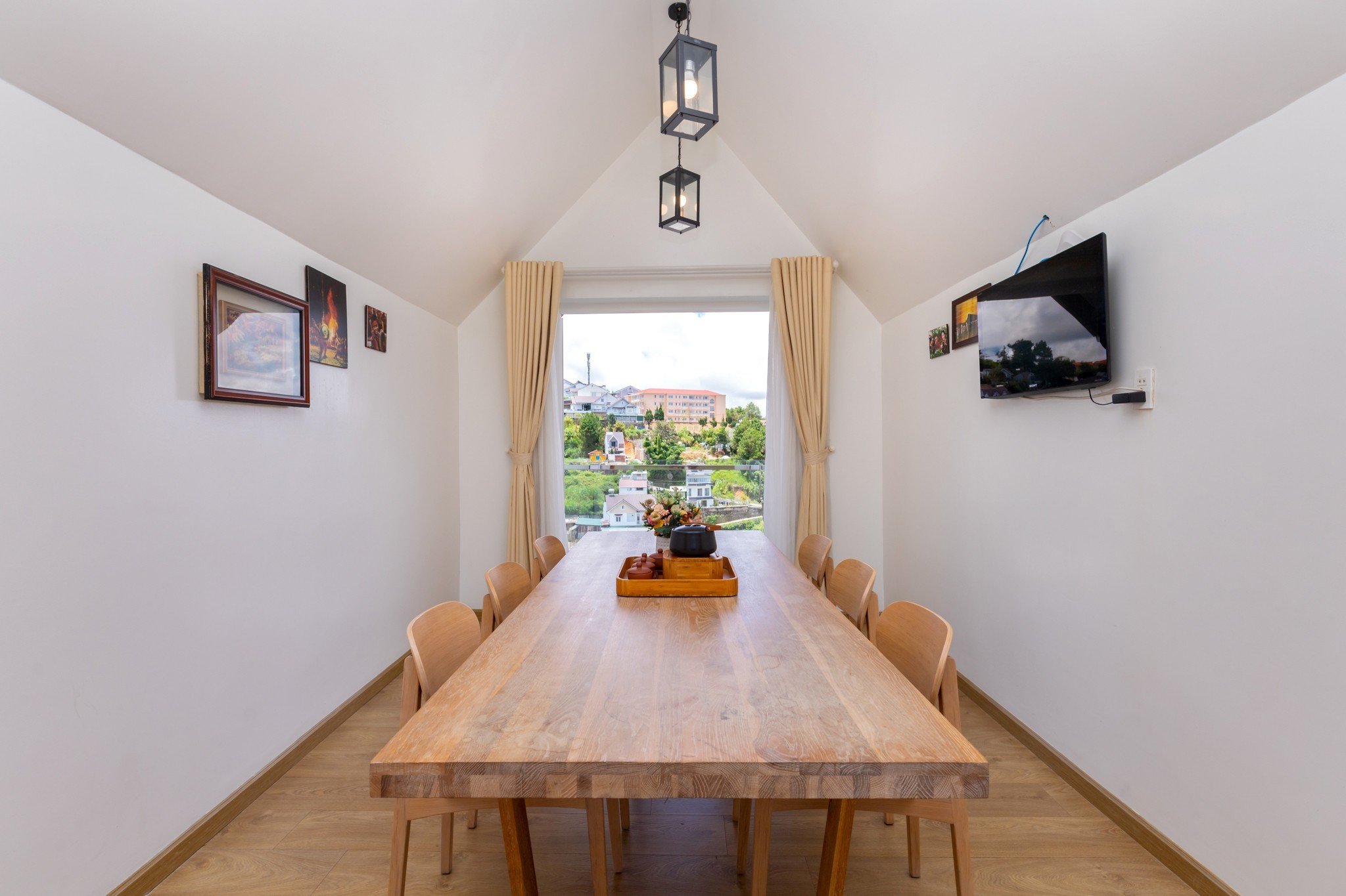 Thông tin chỗ nghỉ : DL094 ‣ Số phòng ngủ : 6 ‣ Số khách tiêu chuẩn : 12 ‣ Tối đa (Phụ phí) : +2 ‣ WC : 7 ‣ Phòng Khách: Có ‣ Bồn tắm : 5 ‣ Xông hơi : 1 ‣ Điều Hoà : Không ‣ Phòng Bếp: Có ‣ View :Rừng Thông, Thành Phố ‣ Không gian tiệc: Có ‣ Nơi đậu xe miễn phí ‣ Đồ dùng BBQ: Có ‣ Wifi miễn phí ‣ Thú cưng : Không ‣ Số phòng 1 giường : 6 | ‣ Địa chỉ : Đường Nguyễn Hữu Cảnh, Phường 8, TP Đà Lạt. ‣ Khoảng cách đến chợ : 3km